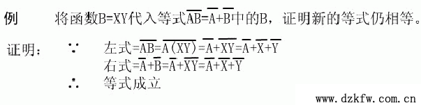 在任一邏輯等式中,如果將等式兩邊所有出現的某一變量都代之以一個邏輯函數,則此等式仍然成立,這一規則稱之為代入規則。