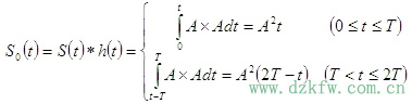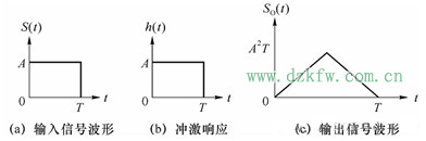例1 設匹配濾波器的輸入信號是一單個脈沖,如圖2(a)所示,試求匹配濾波器的特性和輸出信號波形。