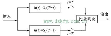 匹配濾波器構成的接收機方框圖如圖4所示。圖中,有兩個匹配濾波器,