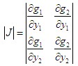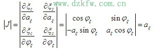 為雅可比行列式,它等于   由   進行偏微分,并代入雅可比行列式,得   于是   因為,所以上式中包絡,而內取值。