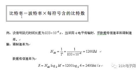 一個數(shù)字脈沖就是一個碼元,我們用碼元速率表示單位時間內(nèi)信號波形的變換次數(shù),即單位時間內(nèi)通過信道傳輸?shù)拇a元個數(shù)。若信號碼元寬度為T秒,則碼元速率B為: