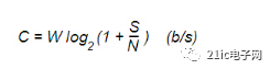 香農(nóng)定理指出,在噪聲與信號獨立的高斯白噪信道中,假設(shè)信號的功率為S,噪聲功率為N,信道通頻帶寬為W(Hz),則該信道的信道容量C有: