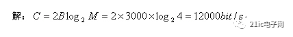 例1:假設(shè)一個傳四進制數(shù)據(jù)信號的無噪聲數(shù)字信道,帶寬為3000Hz,求其信道容量。