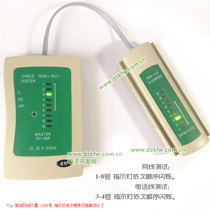 網線制作好后,還需要測試下,是否能夠正常使用,這就需要使用網線測線儀了。網線測線儀使用非常簡單,以下是使用方法圖解。