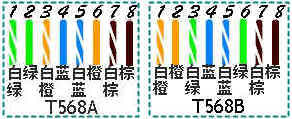標準568A:1綠白 ,2綠 ,3橙白 ,4藍 ,5藍白 ,6橙 ,7棕白 ,8棕