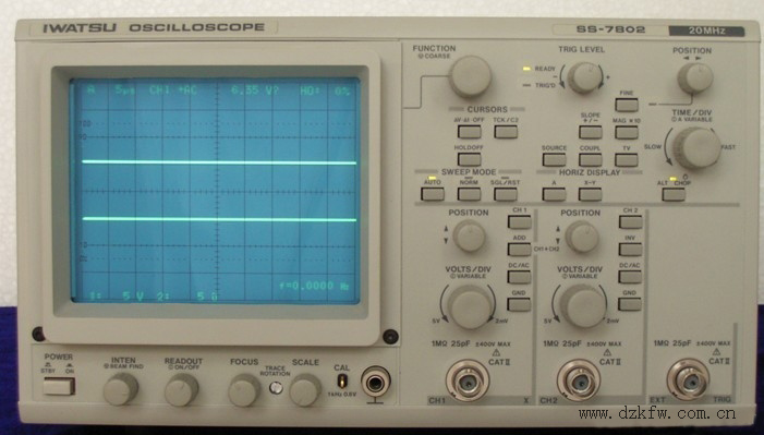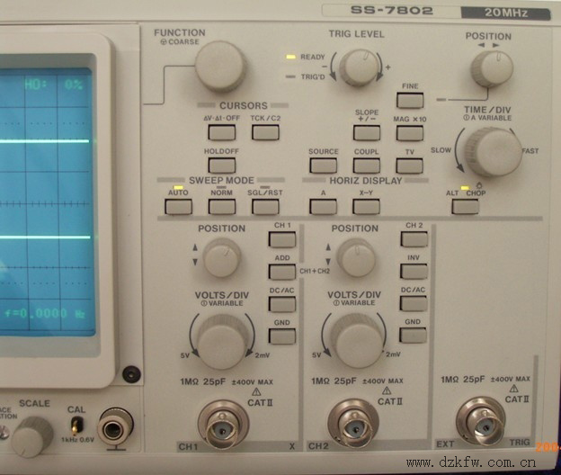 (4)峰值自動(P-P AUTO):無信號時,屏幕上顯示光跡;有信號時,無需調節電平即能獲得穩定波形顯示。該方式只有部分示波器(例如CALTEK卡爾泰克CA8000系列示波器)中采用。