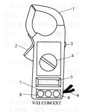 1-鉗頭2-鉗頭扳機3-保持開關4-旋轉開關5-顯示器6-絕緣測試附件接口7-公共地端8-電壓電阻輸入端9-手提帶