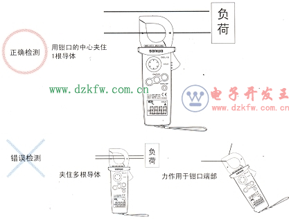 ③按下扳機打開鉗口,鉗住一根導線,如果鉗住兩根以上,測量無效。