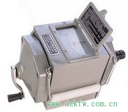 用于測量高值電阻和絕緣電阻的儀表叫做搖表,現在新型產品通常稱為絕緣電阻測試儀或者絕緣電阻表,有時也稱為兆歐表。其中老款搖表的外形如下右圖所示: