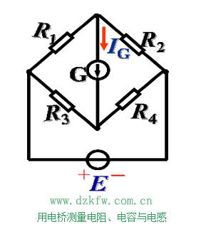當檢流計 G 中無電流流過時,電橋達到平衡。