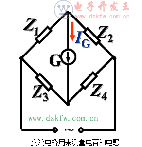 交流電橋平衡的條件為 Z 1 Z 4 = Z 2 Z 3 , 即 | Z 1 | | Z 4 | = | Z 2 | | Z 3 | ,ф1+ф4=ф2+ф3。
