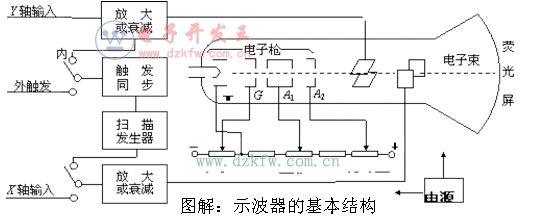示波管本身相當于一個多量程電壓表,這一作用是靠信號放大器和衰減器實現的。由于示波管本身的X及Y軸偏轉板的靈敏度不高(約0.1—1mm/V),當加在偏轉板的信號過小時,要預先將小的信號電壓加以放大后再加到偏轉板上。為此設置X軸及Y軸電壓放大器。衰減器的作用是使過大的輸入信號電壓變小以適應放大器的要求,否則放大器不能正常工作,使輸入信號發生畸變,甚至使儀器受損。對一般示波器來說,X軸和Y軸都設置有衰減器,以滿足各種測量的需要。