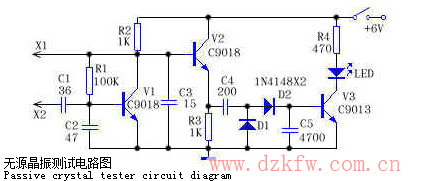 無源晶振測試電路圖 Passive crystal tester circuit diagram