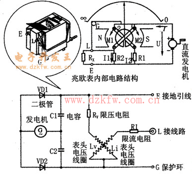 搖表(絕緣電阻表)主要結(jié)構(gòu)是由手搖發(fā)電機(jī)、電磁式無(wú)機(jī)械反作用的表頭組成,對(duì)外有接線柱(L:線路段、E:接地端、G:屏蔽端)。新型的絕緣電阻測(cè)試儀通常和數(shù)字萬(wàn)用表差不多的外形。