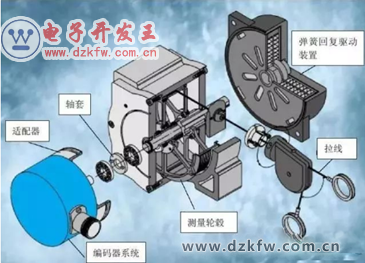 拉線編碼器就是在編碼器上安裝一個類似彈簧式拉線和,用來進行位移的測量。簡單點說就是將直線進行位移從而轉化成為一個編碼器軸的旋轉運動。拉線編碼器多采用的是多圈絕對值,對于精準度的要求不高。