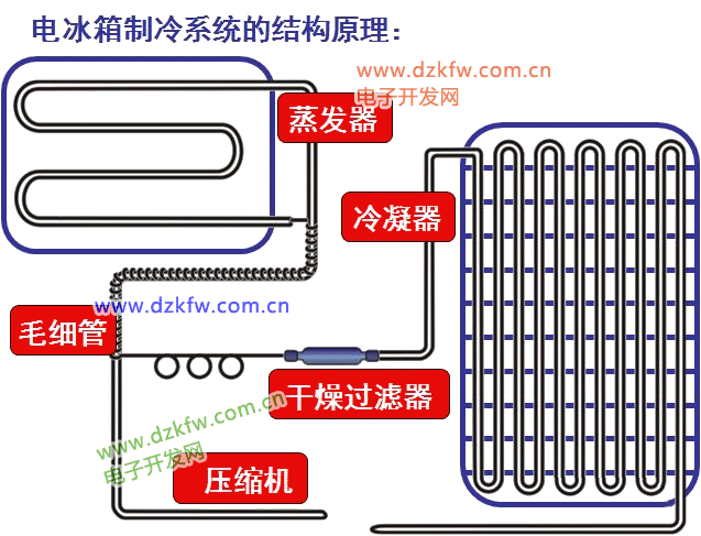 電冰箱的制冷系統主要包括蒸發器、冷凝器、毛細管、干燥過濾器和壓縮機