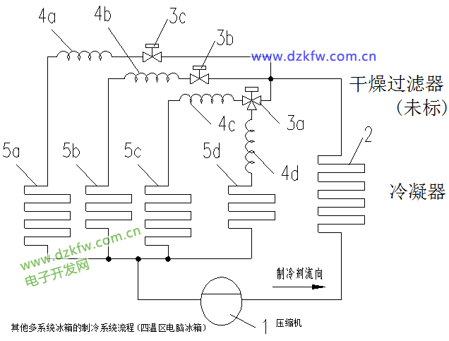 4、其他多系統冰箱的制冷系統流程(四溫區電腦冰箱)
