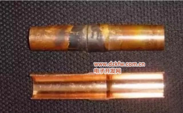 附:現(xiàn)場(chǎng)維修焊接時(shí),為了方便、圖快,不少人違規(guī)操作——沒有充入氮?dú)獗Wo(hù);盡管如此,焊接后基本上不影響空調(diào)正常運(yùn)行。