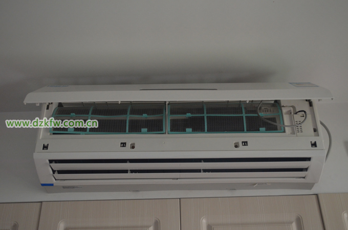 5、把晾干的空調過濾網裝回原來的位置,并且蓋上空調蓋子,插上電源。