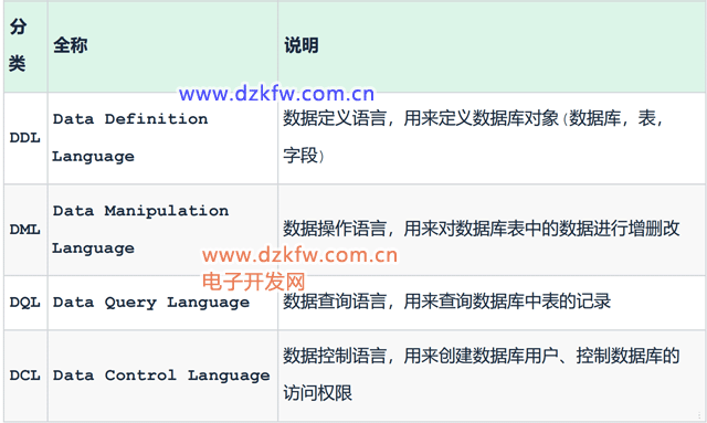 Data Definition Language,數(shù)據(jù)定義語言,用來定義數(shù)據(jù)庫對(duì)象(數(shù)據(jù)庫,表,字段)