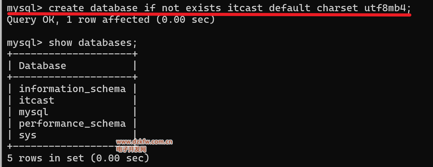 在mysql中輸入下面指令,名為itcast的數(shù)據(jù)庫創(chuàng)建成功