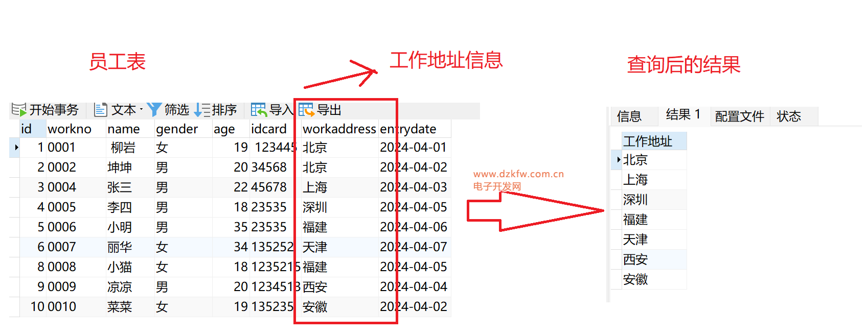 D:查詢公司員工的上班地址有哪些(不要重復(fù)):