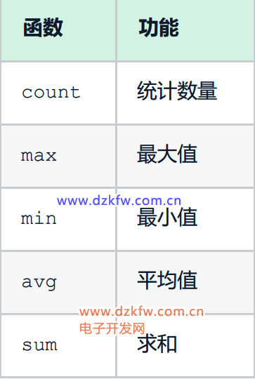 將一列數(shù)據(jù)作為一個(gè)整體,進(jìn)行縱向計(jì)算 ,下面展示常見聚合函數(shù):
