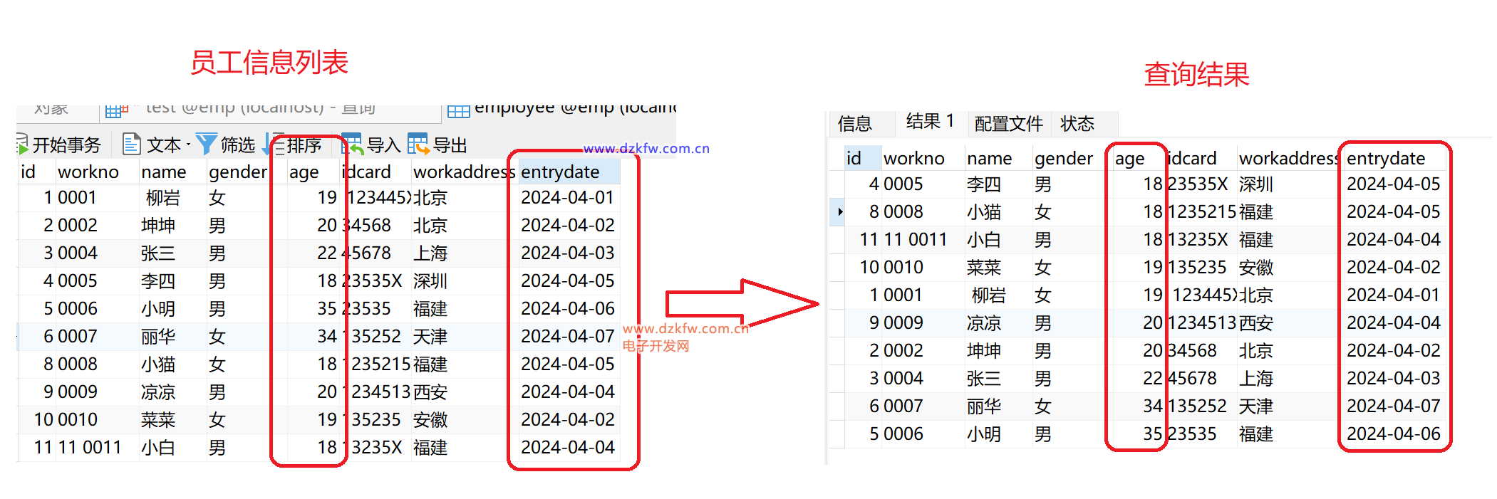 select * from emp order by age asc; select * from emp order by age; -- 默認(rèn)升序排序