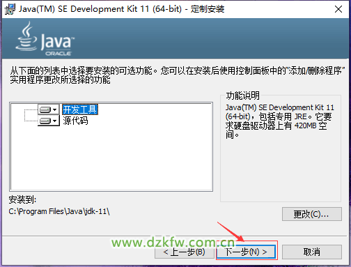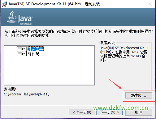 我們可以根據(jù)自己的需求選擇要安裝的模塊。我們選擇“開(kāi)發(fā)工具”模塊。另外,在下圖所示的界面右側(cè)有一個(gè)“更改”按鈕,單擊該按鈕可以進(jìn)人更改JDK安裝文件夾界面。