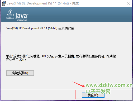 在圖中,單擊“關(guān)閉”按鈕,關(guān)閉安裝程序,完成JDK的安裝。