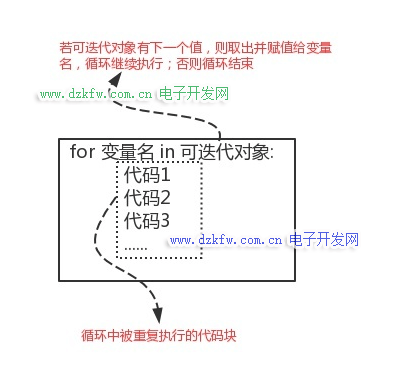 for循環(huán)稱之為"取值循環(huán)",循環(huán)次數(shù)取決in后包含的值的個數(shù)